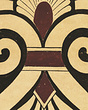 The tile is large and flat, expanding rapidly toward the back , channeled on the underside to fit over its neighbors. On its top are rude transverse scratchings. The face of the antefix in its lower part is decorated with a small central and two small lateral palmettes connected by scrolls, in red figures technique, details in added purple. Purple covers the edges of the antefix and a band across the bottom of its face.