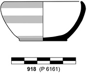 Flat underside. Lower edge of wall projects slightly. Glazed inside, banded outside.