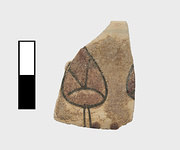 | Description: | Single fragment preserving small part of rim and body of an open-bodied vessel, probably a bowl (?). On exterior, floral design of purple and black on white. On interior, horizontal floral motif (?) below rim. Paste or composition (?) | |