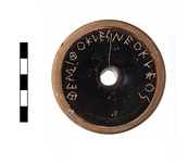 | Description: | Kylix base with black glaze. Inscribed on bottom. | |