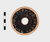 | Description: | Kylix base with black glaze. Inscribed on bottom. | |