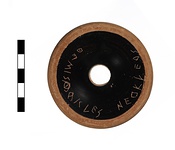 | Description: | Kylix base with black glaze. Inscribed on bottom. | |