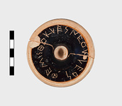 | Description: | Kylix base joined in two pieces. Part of stem. Black glaze. Inscribed on bottom. | |