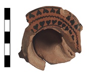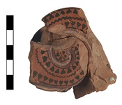 Description:   Two fragments of handle of large vase with vine patterns on ends.
