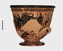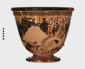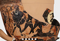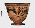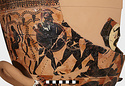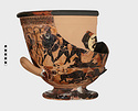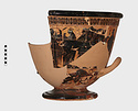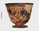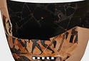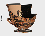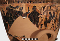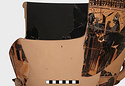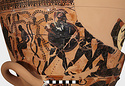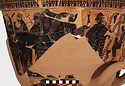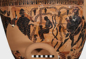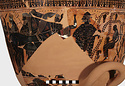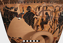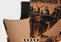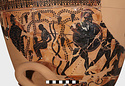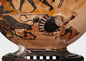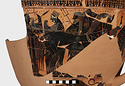 | Description: | About two-thirds of large black-figured krater by Exekias. One side shows scene with the gods, the other side the fight over body of Patroclus. | |