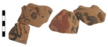 | Description: | Four sherd from same vase. Design shows birds in black and red. | |