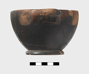 | Description: | Base and about half of black bowl. One handle preserved. Some red on handle and near rim on outside. | |