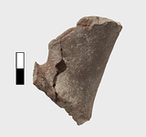 | Description: | Red clay, red surface, plain ware; rather thick. | |