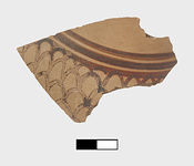| Description: | Buff clay, tan unglazed surface with festoon decoration in brown. | |