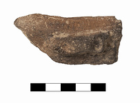 | Description: | Coarse gray clay, poorly fired gray surface, long horizontal lug. | |