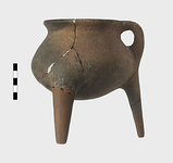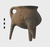 | Description: | Small cooking pot on three legs; with one handle only. Badly blackened by fire. Two legs accompanying ( legs of pot restores ). Gauss (2003), p. 100, n. 35. | |