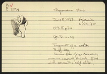 | Description: | Fragment of a krater, buff clay. Brown gray glaze decoration: rim - reserved triangle filled with concentric half circles. Cf. Belonging with AP 2592, AP 2593, AP 2658, AP 2657. See AP 2658 for complete description. | |
