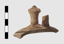 | Description: | Fragment from shoulder of stirrup vase decoration with floral pattern. Dark red glazed paint on yellow buff ground. Joined to AP 2876. | |