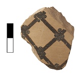 | Description: | Fragment of Mycenaean (?) vase of large size. Pale yellow clay, dark brown paint. The field is marked off in squares and each corner dotted. | |