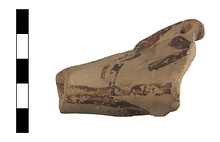 | Description: | Mycenaean, black design on buff clay; hole through spout, small,hole on side. | |