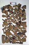 | Description: | Many fragments of large amphora. Linear design in brown on buff. Broad band with roughly cut inscription. | |