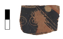 | Description: | Black figure sherd. Scroll design. White paint. | |