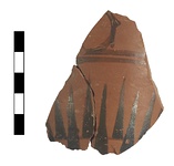 | Description: | Two fragments showing a foot with double band and ray pattern below. | |