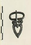 | Description: | A small buckle, hinged, consisting of an oval with tongue and a heavier heart-shaped element decorated with a single groove. Attachment holes on the underside, one partly broken away. Cf. B 1268; cf. also Corinth XII, no. 2191, pl. 114. 7th c. A.D. | |