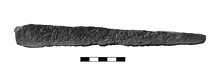 | Description: | Partly disintegrated on one side. Each of four sides concave, three are inscribed. Butt tapers at one end, hole for insertion of spear shaft on other. Bronze(?) | |