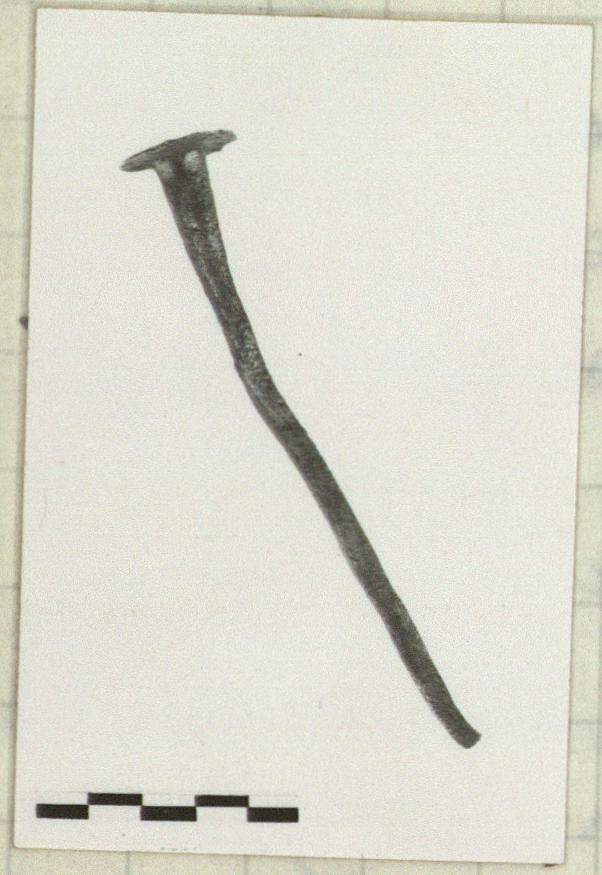 | Description: | End broken. Long spike with most of shaft square in section becoming round near head. | |