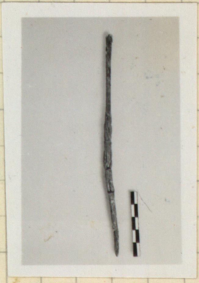 | Description: | A long, heavy pin, pointed at one end, plain at the other. Broken in three pieces. | |