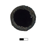 | Description: | Intact, but corroded and incrusted. Bronze cylinder, flaring and with slightly raised collar at rim and base. Lower wall extending below base and cut out to form three feet. Textile impressions. Cf. Agora X, DM 43, from late fifth BC. | |