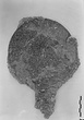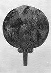 | Description: | Injured, by fall of slab, both above and below. Thick flat disk. The handle though short appears to be complete. At its top, a pair of volutes with a palmette between, and on either side a pair of tendrils uncurling horizontally. | |