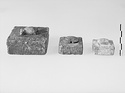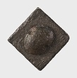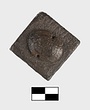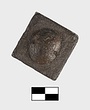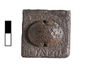 | Description: | Thick square slab of bronze. The metal having a high lead content. On the top added in relief, an oval shield. Inscribed on top lengthwise of the shield and around two vertical faces. | |