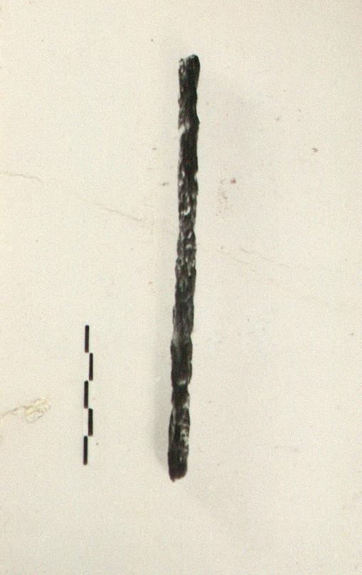 | Description: | A solid shaft square in section, twisted. Broken at both ends and heavily corroded. | |