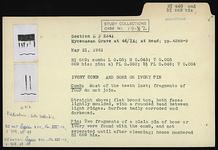 | Description: | Most of the teeth lost; fragments of four do not join. Straight above; flat broad top, both faces lightly moulded, with a rounded band between light ridges. Surface badly corroded and darkened. Late Helladic. | |
