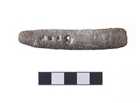 | Description: | Chisel-shaped tool with four holes drilled through it. Late Helladic. | |