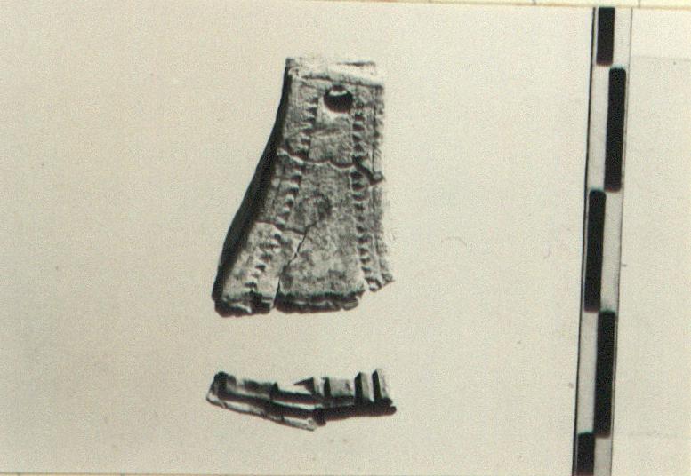 | Dimensions: | H. 0.021; W. (top) 0.009, (bottom) ca. 0.018; Th. (top) 0.005, (bottom) ca. 0.016 | |