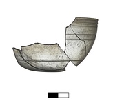| Description: | Three joining fragments preserve complete profile. A non-joining found in the dump. Bowl roughly hemispherical in shape with plain rim and small shallow depression for base. Horizontal grooves at intervals on exterior. | |
