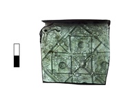 Description:   A single fragment preserves part of the bottom and part of one side of a square-bodied bottle.