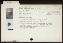 | Description: | A nearly flat fragment, turning down along the curved (broken) edge. Decorated by light incision: along the edge, alternating long and short lines; further in a branch of herringbone pattern. Nearly colorless glass. | |
