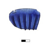 | Description: | Only a fragment from the rim and side wall remain. The outside of the moulded wall is heavily ribbed up to a plain band which encircles the top. Deep blue glass. | |