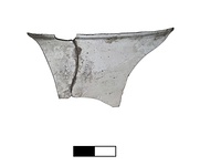 | Description: | Two joining fragments preserve about a third of the rim and part of the straight side wall. Rim turns out and up slightly. Possibly slight trace of thumb indents. Pale blue green glass. Very similar to G 352. | |