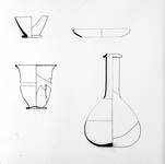 | Description: | Fragments from a flat-bottomed globular bottle with long narrow neck and mouth like that of an unguentarium. The base preserved, and parts of the wall, neck and mouth, upper and lower sections non-joining. | |