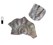 | Description: | Three fragments of a dish with a flat base and apparently a widely flaring rippled rim. Edge not preserve. Cut pattern on outside: rows of ovals. | |