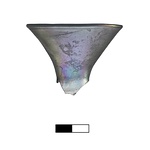 | Description: | Mouth preserved. Widely flaring round mouth; plain lip. Light bluish green glass. | |