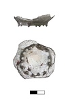 | Description: | The base of an open bowl, and lower part of walls. The foot is a ring of small raised knobs; center of bottom slightly raised inside. Almost colorless glass. Cf. G 67, G 297, G 300, G 338. | |