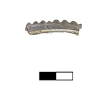 | Description: | A fragment of rim from a small bowl. Vertical rim, decorated with ribbing. Bluish glass. | |