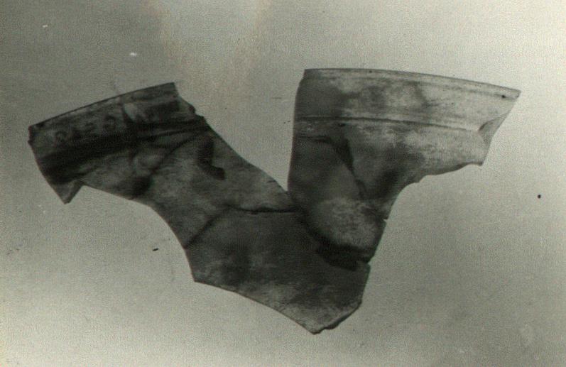 | Description: | Several joining fragments give part of rim and floor of a large plate or platter. Projecting rim thickened at inner and outer edges. Pale green, almost colorless glass. | |