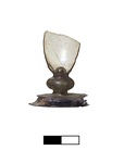 | Description: | Most of base and beginning of wall. It has folded base, bulb above the base protruding into the cup. Very delicate pale yellow glass, heavy enamel weathering. | |