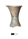 | Description: | Rim and neck fragment. Folded rim, narrow neck flaring below. Pale green glass, very thick enamel weathering. | |