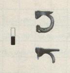 | Description: | Two loose handles with scraps of rim attached. Lower part of handle (a) missing. Apparently from one vessel, missing rest of body. Upright wall with plain fine-polished rim. Trailed handles forming vertical rings with lower ends looped back up exteriors. Tops pinched out to form flat-topped plates ending in pinched discs bearing two or more lines of illegible faint lettering on tops. Light blue-green glass. A known Early Imperial type | |