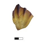 | Description: | Two joining fragments of base and lower wall; no finished edge. Wheelmade, translucent, dark yellowish -brown. Thin-walled shallow bowl with narrow ribs and slightly concave base. Two narrow horizontal grooves halfway up inside wall. Context early 1st century AD. | |