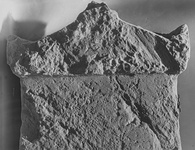 | Description: | Inscribed stele. Broken away below; the lettered face much worn; in its middle the worn socket for a door pivot. From the year of Peithidemos, in which the Chremonidean War began. Hymettian marble. | |