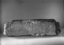 | Description: | Inscribed fragment. The left side, much weathered, is preserved; otherwise broken. Part of three lines of the inscription preserved. Hymettian marble. | |